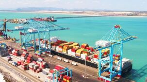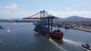 Os dez equipamentos da empresa chinesa ZPMC chegaram sábado (10) ao terminal da Santos Brasil a bordo do navio Zhen Hua 28; investimentos da ordem de R$ 300 milhões têm foco na modernização e descarbonização do terminal