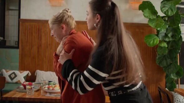 “Se o objeto não sair, realize cinco compressões abdominais (manobra de Heimlich), feche um punho e posicione-o acima do umbigo e abaixo do osso do peito, segure o punho com a outra mão e comprima com força para dentro e para cima, alternando as pancadas e compressões até que o objeto seja expelido ou a pessoa desmaie”.