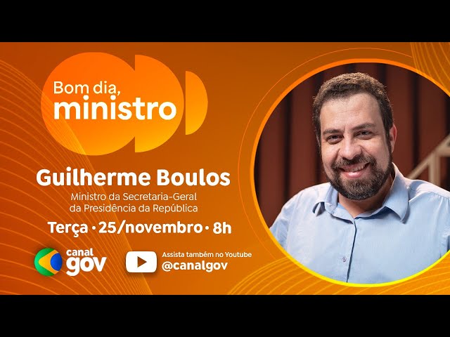 O ministro da Secretaria-Geral da Presidência, Guilherme Boulos, foi o convidado do Bom dia, Ministro desta terça, 25 de novembro. Durante a entrevista com profissionais de rádios e portais de várias regiões, ele detalhou o programa Governo na Rua, que vai percorrer dezenas de cidades nos próximos meses para aproximar políticas públicas da população. Boulos também enfatizou a urgência na regulamentação do trabalho de transporte individual e entregas realizadas por aplicativos e plataformas digitais, assim como uma revisão da escala 6 x 1 para trabalhadores.