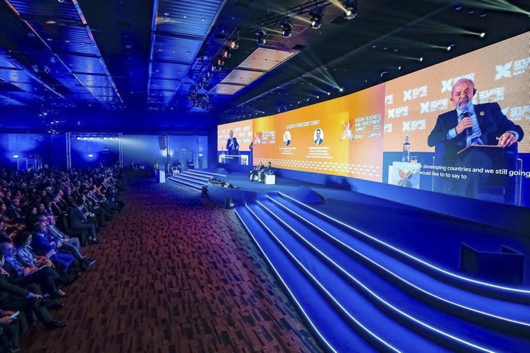 O presidente Luiz Inácio Lula da Silva participou neste domingo, 26 de outubro, da Reunião Empresarial Brasil-Malásia, em Kuala Lumpur, capital do país do Sudeste Asiático. Durante o evento, Lula ressaltou o potencial de crescimento do comércio entre os dois países, e afirmou que "o Brasil está de braços abertos para receber empresários da Malásia".