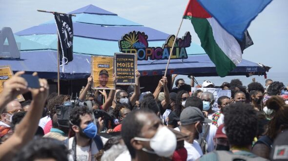 Centenas de manifestantes fizeram um protesto neste sábado, dia 5, em frente ao quiosque Tropicália, na Barra da Tijuca, onde o congolês Moïse Kabagambe foi morto. O ato reuniu familiares de Moïse e dezenas de entidades defensoras da causa negra e dos direitos humanos, além de organizações políticas diversas.