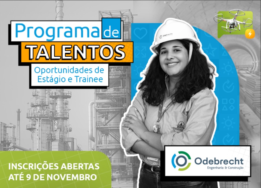 A Odebrecht Engenharia & Construção mantém abertas as inscrições, iniciadas no dia 7 de outubro, para o Programa de Talentos 2026, que oferece vagas de estágio e trainee em obras e escritórios da construtora no Brasil. O programa tem por objetivo integrar estudantes e profissionais recém-graduados através da experiência prática em projetos de grande porte executados pela empresa, incluindo plantas industriais, refinarias, obras de transporte, saneamento, dentre outros segmentos. As inscrições seguem até 9 de novembro pelo site www.vagas.com. Todo o processo seletivo será realizado virtualmente.