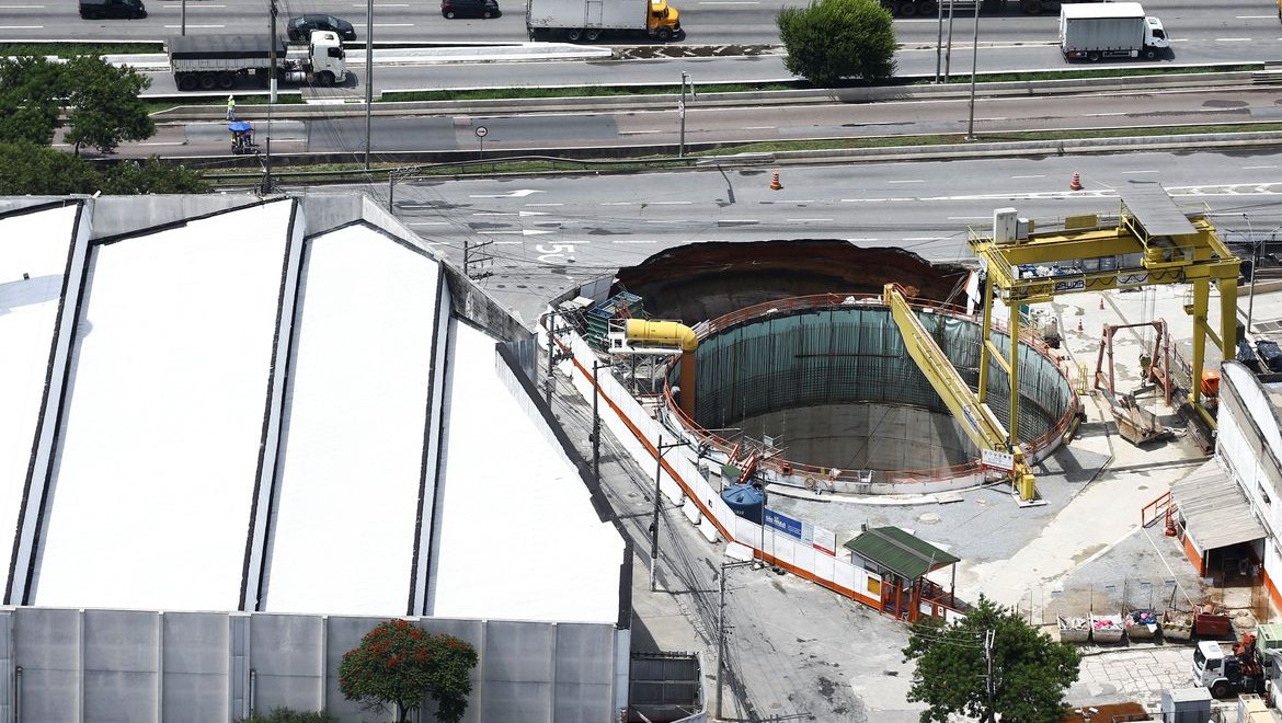 Na terça, a cratera se abriu ao lado de um poço da obra do metrô, após o rompimento da tubulação de esgoto, quando o tatuzão, equipamento responsável pela escavação dos túneis do metrô, passava cerca de três metros abaixo.