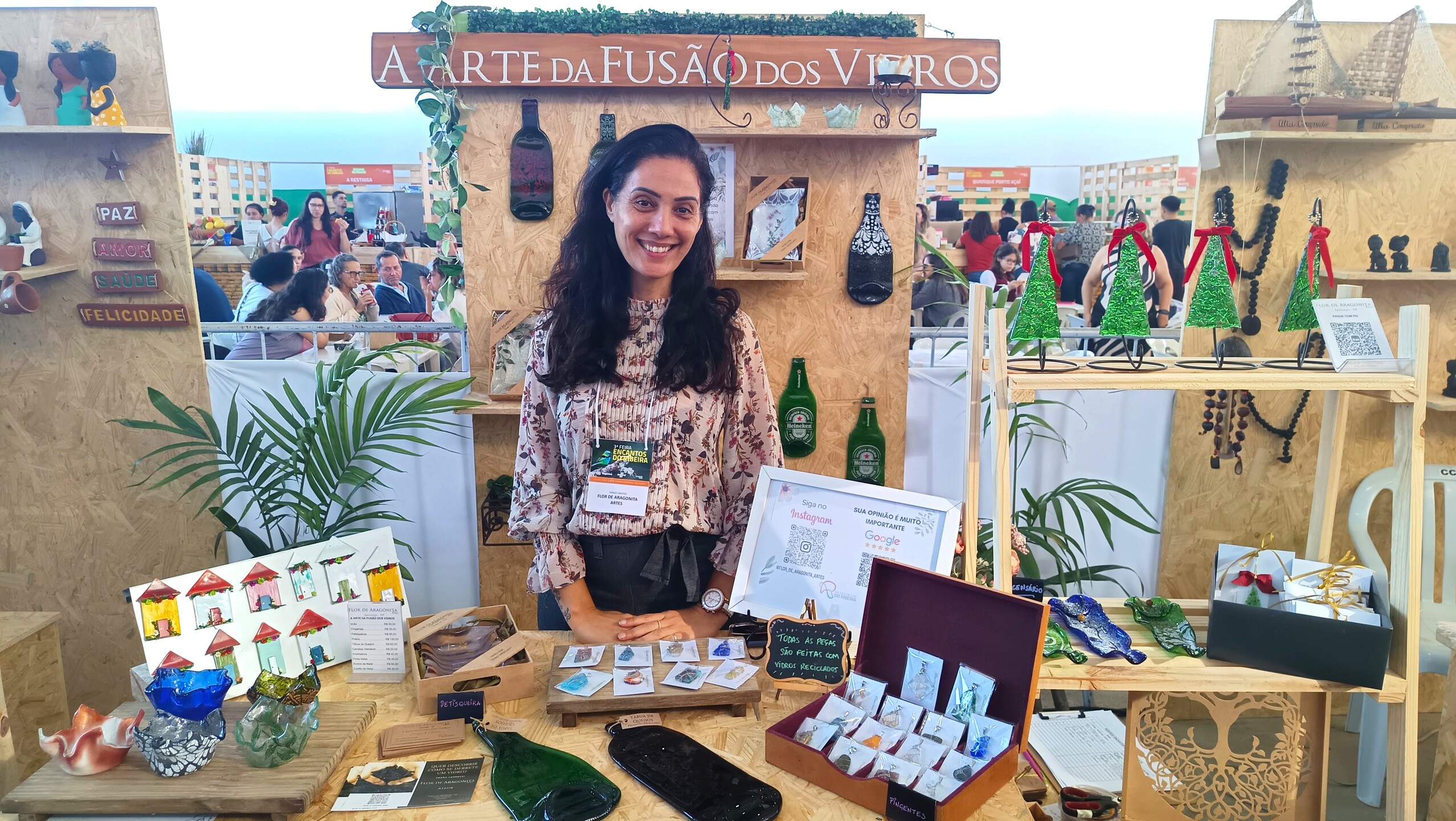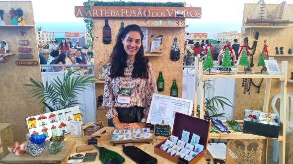 Artesã em Iporanga, Janayna Franco produz peças com vidro reciclado em seu Ateliê Flor de Aragonita. Na COP 30 ela vai expor petisqueiras, incensários e pingentes. Por uma sobrinha que vai trabalhar no evento em Belém, a artesã também enviou dez pingentes feitos nas cores da bandeira brasileira destinados a presentear autoridades, entre elas a ministra do Meio Ambiente, Marina Silva.
