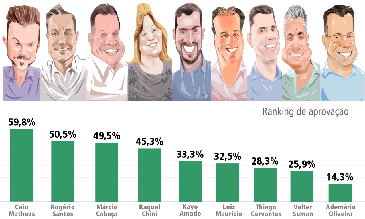 No placar geral, a pesquisa Badra revelou a aprovação de quatro dos nove prefeitos eleitos ou reeleitos em 2020. São eles: Caio Matheus, de Bertioga, com 59,8%; Rogério Santos, de Santos, com 50,5%; Márcio Cabeça, de Mongaguá, com 49,5%; e Raquel Chini, de Praia Grande, com 45,3%. A maioria, cinco, foi reprovada. São eles: Ademário Oliveira, de Cubatão, com 80,3% de reprovação; Válter Suman, de Guarujá, com 63,3%; Tiago Cervantes, de Itanhaém, com 58,3%; Luiz Maurício, de Peruíbe, com 53,5%; e Kayo Amado, de São Vicente, com 51,3%.