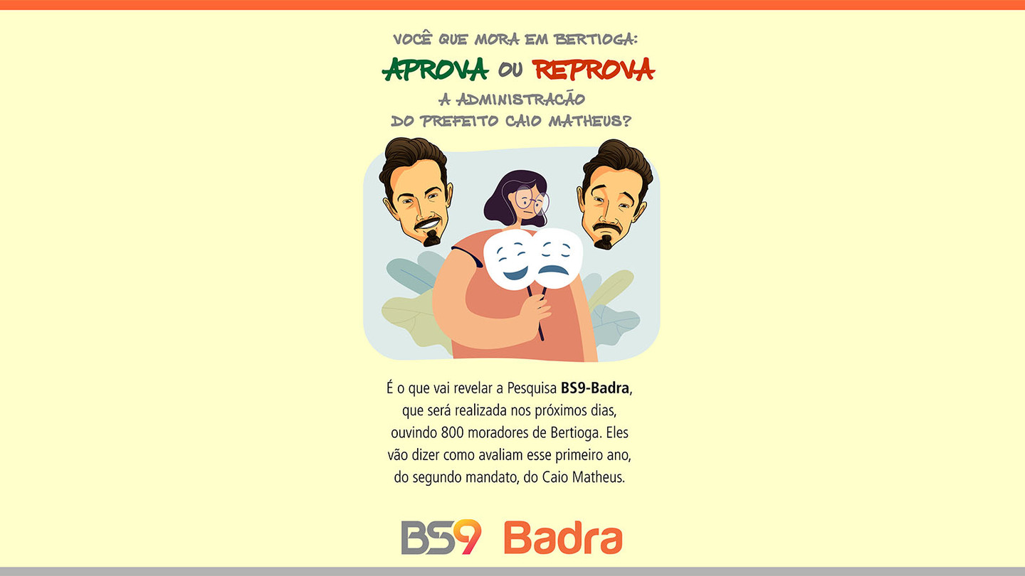 O levantamento da Badra será realizado entre os dias 27 de janeiro e 5 de fevereiro e vai ouvir, em cada município, 800 moradores, totalizando 13.600 entrevistados. Diariamente, a partir do dia 1 de fevereiro, será divulgado o resultado do levantamento cidade por cidade, começando pelos municípios da Baixada Santista. Acesse o Portal BS9 e confira.