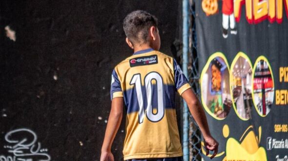 Além de ser um terreno fértil para o desenvolvimento de habilidades físicas e técnicas, o futebol também oferece um espaço para socialização e amizade. Assim, o desenvolvimento do Enzo emociona. Hoje se sente seguro onde está. Chega conversando com todos os meninos, montando o time dele e entregando os coletes para os amigos.