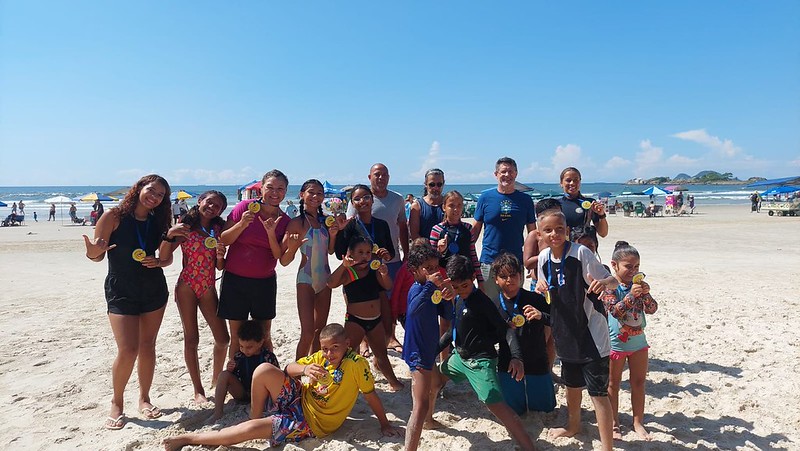 No último sábado (31), a Prefeitura de Guarujá por meio das secretarias de Educação (Seduc) e Esporte e Lazer (Sel), proporcionou momentos de aprendizado, integração e desenvolvimento social com um aulão de surfe na Praia das Pitangueiras. O projeto teve como público principal as crianças atendidas pelos Centros de Atividades Educacionais Comunitárias (Caecs), com a proposta de envolver também familiares e moradores da comunidade.