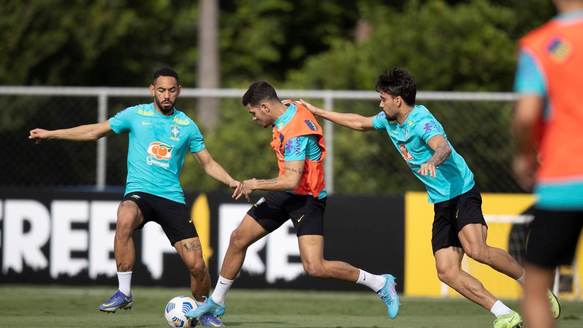 A escalação nesta terça terá: Ederson; Daniel Alves, Marquinhos, Thiago Silva e Alex Telles; Fabinho, Lucas Paquetá e Phillipe Coutinho; Matheus Cunha, Raphinha e Vinícius Júnior.