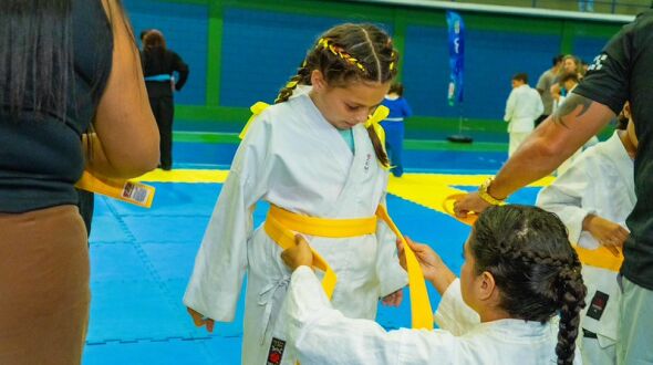 Uma noite marcada pela inclusão no esporte e pela evolução técnica dos alunos de karatê marcou a cerimônia de troca de faixas promovida pela Prefeitura de Bertioga, realizada na última sexta-feira (24), no Ginásio Municipal Alberto Alves.