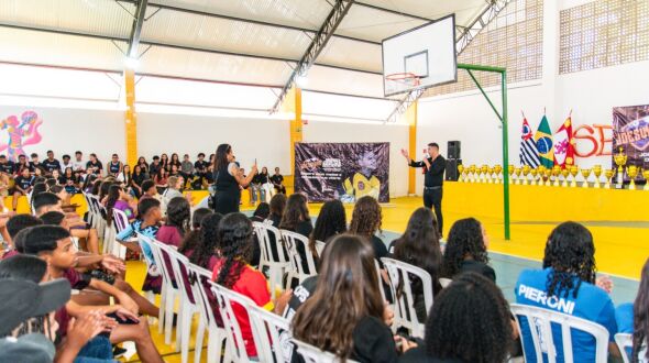A solenidade contou com a presença do prefeito Kayo Amado, da vice-prefeita Sandra Conti, a secretária de Educação, Michelle Paraguai, do secretário de Esportes e Lazer, Wando Barra.