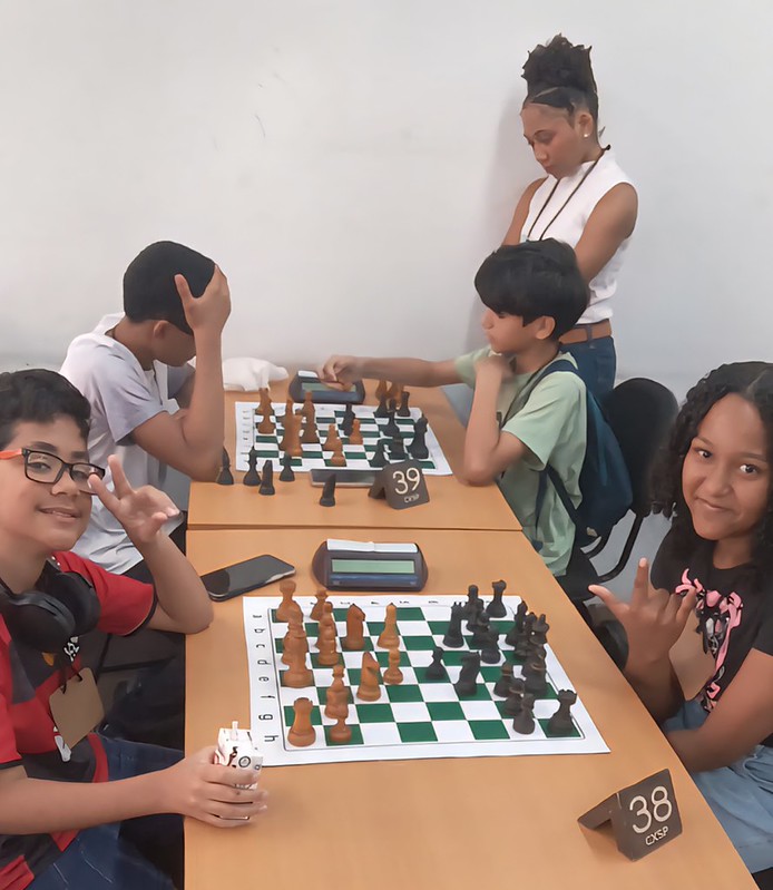 Com uma turma formada por 25 estudantes, Guarujá também conquistou troféu de maior equipe da competição. A aluna Luma Fernanda, da Escola Maria Aparecida de Araújo, destacou a experiência inédita de ter jogado contra uma enxadrista deficiente visual.