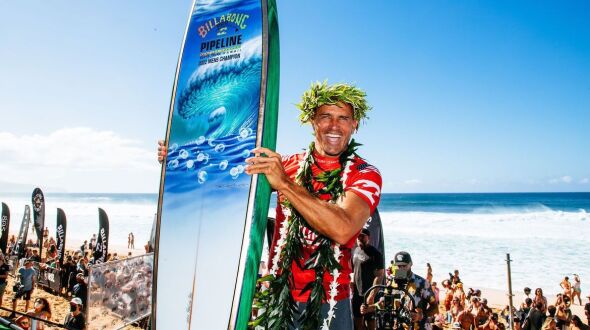 Com o título, alcançado ao superar o local por 18,77 (com direito a um 9,00 ao completar um tubo de backdoor) a 12,53, o maior nome da história do surfe se tornou o atleta mais velho a conquistar uma etapa do circuito mundial.