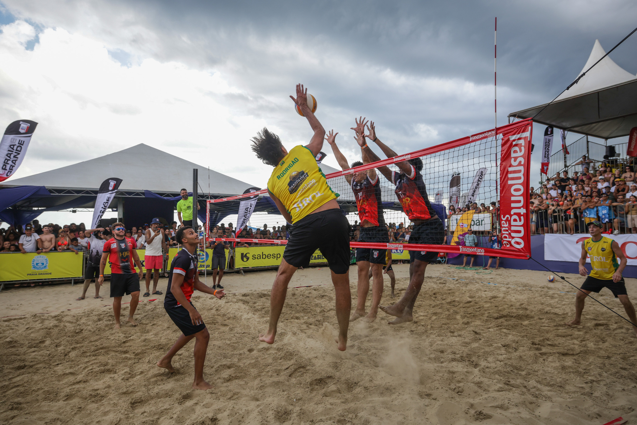 As arquibancadas da Estação Guilhermina, em Praia Grande, ficaram lotadas no último domingo (18). O público presente no Jogo das Estrelas foi premiado com um show de seis campeões olímpicos de vôlei. Giba, Rodrigão, Serginho, Dante, Fabiana e Fofão desfilaram na quadra de areia todo o talento já conhecido e que fez com que se transformassem em lendas com a camisa da seleção brasileira. Em muitas jogadas esbanjaram categoria com a bola, momentos que fizeram o público viajar no tempo para a época mais vitoriosa do Brasil na modalidade.