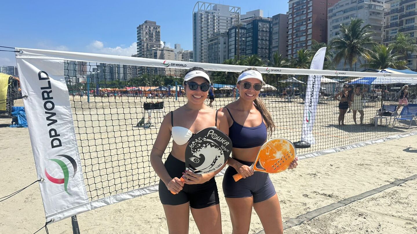 Num sábado de muito sol, cerca de 20 colaboradoras da DP World, patrocinadora master do evento, tiveram aula de iniciação ao esporte, numa quadra montada na Praia do Boqueirão, em Santos, orientadas pelo professor Caio Costa, organizador do torneio, junto com Renan Sellmer, e um experiente jogador.