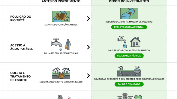 Assim como a família de Jeferson, milhões de famílias paulistas passaram a contar com serviços de saneamento básico desde a desestatização da Sabesp, em julho de 2024. Em 2025, a Companhia realizou investimento recorde de R$ 15,2 bilhões, frente aos R$ 6,9 bilhões do ano anterior, ampliando o acesso aos serviços, promovendo ganhos em saúde pública e contribuindo para a melhoria da qualidade de rios, córregos e praias.
