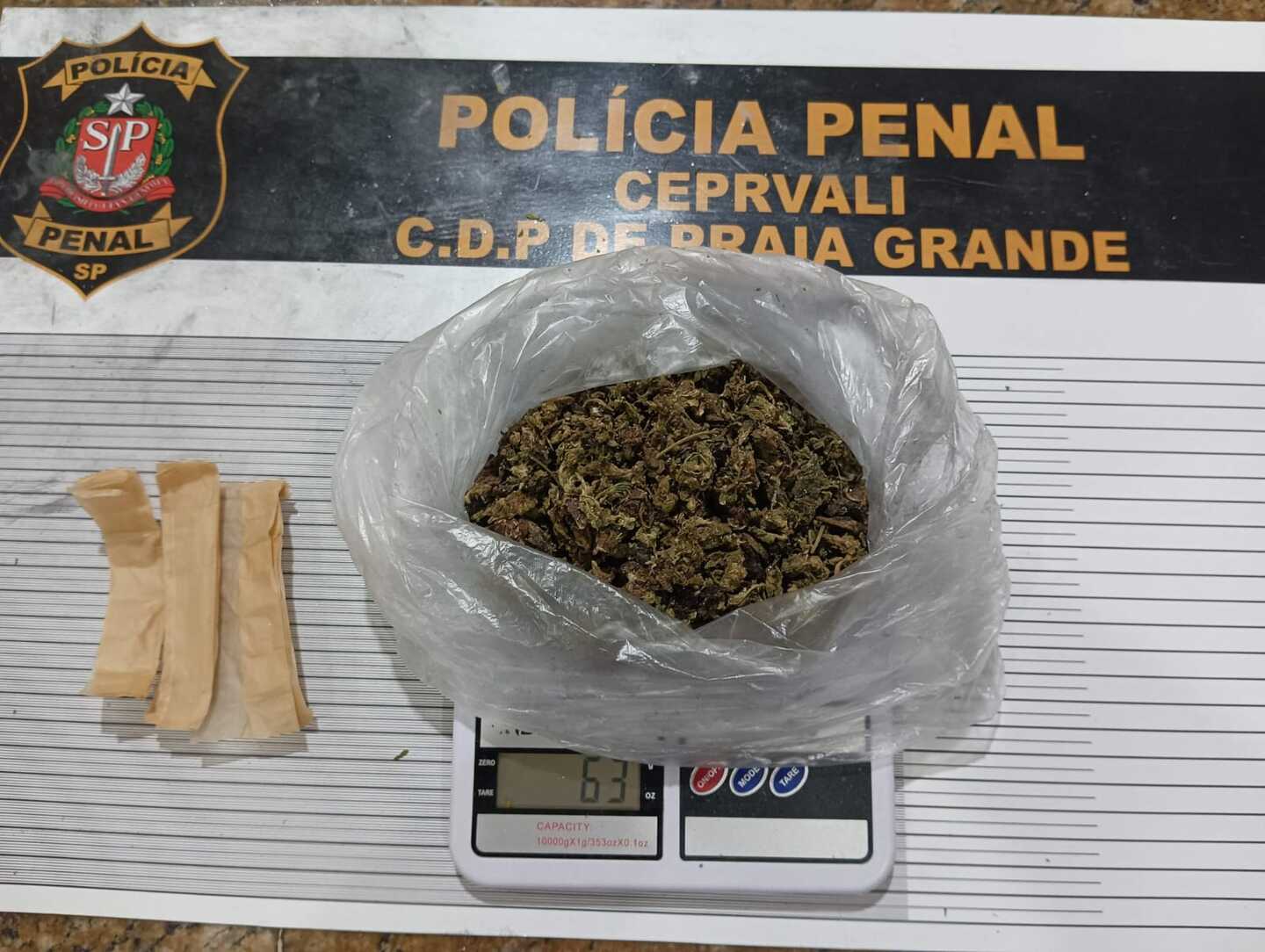 A Polícia Penal do Estado de São Paulo informa que no dia 18, domingo, uma visitante de um preso do Centro de Detenção Provisória (CDP) "ASP Charles Demitre Teixeira" de Praia Grande foi surpreendida com 63 gramas de maconha durante os procedimentos de segurança para entrada no estabelecimento penal, no horário de visitas.