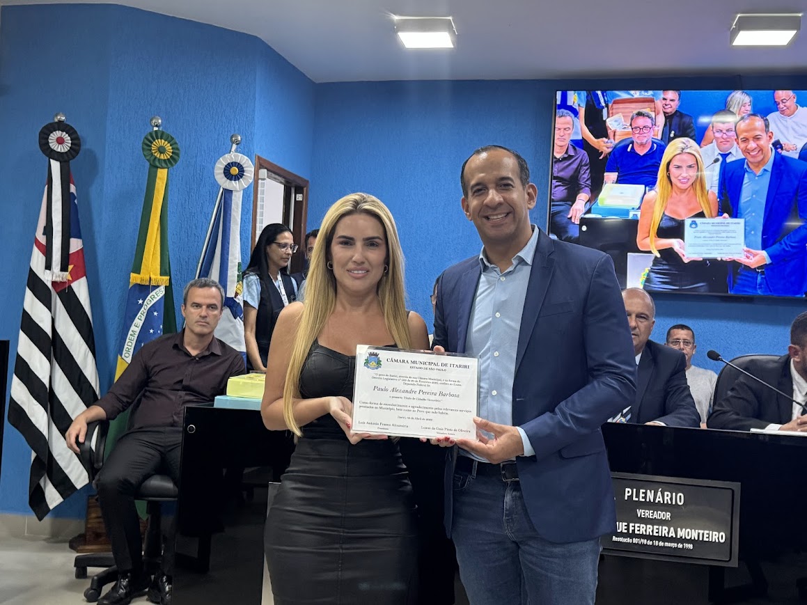 O deputado federal Paulo Alexandre Barbosa (PSD) recebeu, na noite desta quarta-feira (15), o título de Cidadão Itaririense, durante sessão solene na Câmara Municipal de Itariri, no Vale do Ribeira. A homenagem reconhece a atuação do parlamentar, que já destinou mais de R$ 500 mil em recursos para a saúde municipal.
