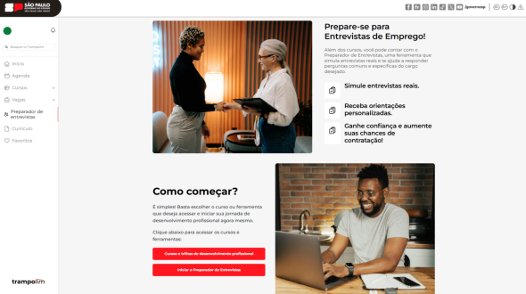 Lançado em julho pela Secretaria de Desenvolvimento Econômico (SDE) do Estado de São Paulo, o Portal Trampolim disponibiliza recursos voltados para quem busca oportunidades no mercado de trabalho. A plataforma foi criada para ser uma alternativa mais completa, moderna e totalmente gratuita na jornada de empregabilidade.