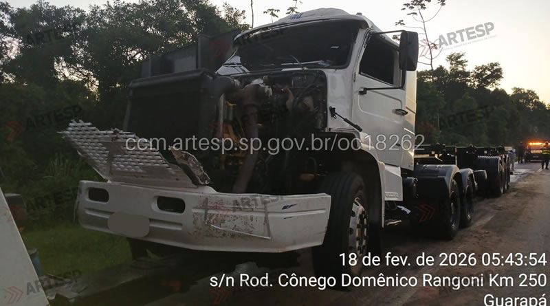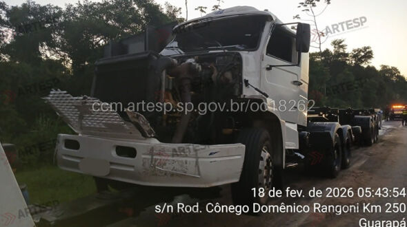 Um acidente envolvendo uma carreta causou lentidão na madrugada desta quarta-feira (18) na Rodovia SP-055, na altura do km 251, em Santos, no litoral de São Paulo. A ocorrência foi registrada por volta das 3h27 e provocou congestionamento de cerca de 3 quilômetros no sentido oeste.