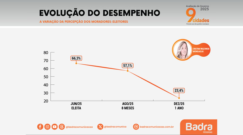 O levantamento da Badra em Mongaguá, excepcionalmente com dois pontos de medição no ano em razão do calendário eleitoral suplementar, sugere que a prefeita atravessa o fim de 2025 sob um cenário de erosão acelerada da aprovação e de cobrança concentrada nos serviços mais básicos, justamente aqueles que costumam definir o julgamento popular fora das redes sociais: saúde, transporte, educação e zeladoria.