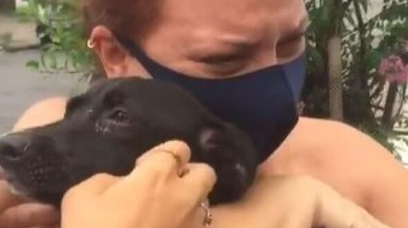 Depois de muitas lágrimas e desespero, Márcia Calçada pôde, enfim, dar um abraço aliviado em sua amiga de quatro patas.