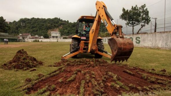 O serviço inclui a troca da grama atual, natural, por um gramado sintético, fabricado especificamente para a prática de futebol, e uma nova estrutura de drenagem.