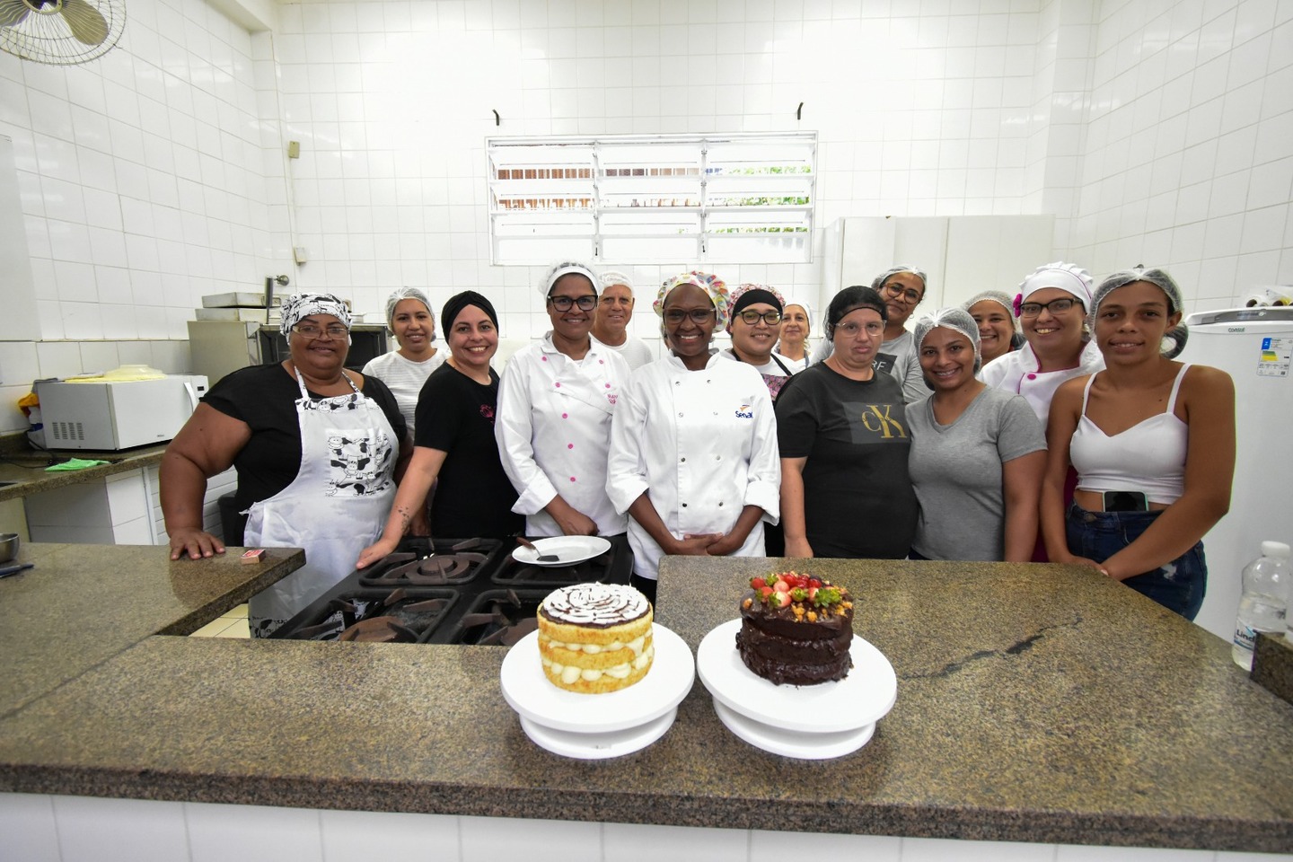 Entre eles, destaque para as especializações ligadas a confeitaria, uma das mais procuradas pela população praia-grandense. A mais recente delas é a de preparação e venda de bolos e tortas, promovida no PIC Vila Alice desde o dia 16 de março e que, na próxima segunda (30), chega ao seu último dia – formando uma nova turma de profissionais da área.