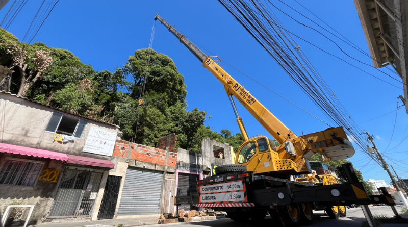 Entre as ações, destaque para a retirada de uma árvore de grande porte que caiu sobre uma residência após o último temporal. Devido ao peso e às dimensões da estrutura, foi necessário o uso de um guindaste de alta capacidade, possibilitando a remoção de forma gradual e segura, com corte em partes e içamento controlado, evitando novos danos ao imóvel.