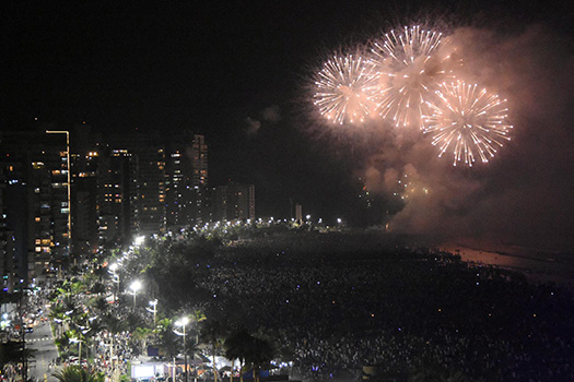 Atrações - Todas as 10 arenas do Estação Verão Praia funcionam durante a virada do ano, com shows musicais gratuitos. As apresentações têm início às 21 horas, seguindo até a 1 da manhã, com pausa para a contagem regressiva para a queima de fogos e a chegada do ano novo.