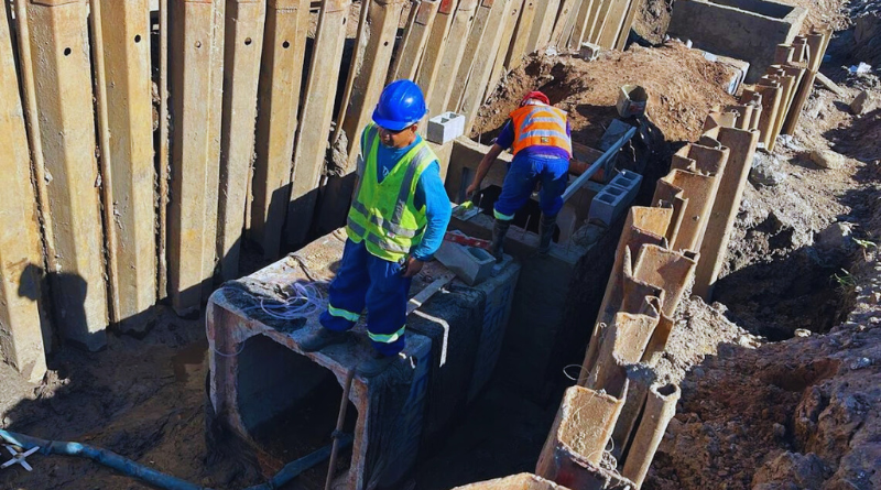 Já estão instalados 76,5 metros de tubo pead (polietileno de alta densidade, é um tipo de plástico muito resistente e de prolongada vida útil) de 500mm de diâmetro para ramais de drenagem, dos 255 previstos. Os 75m de 600mm para o ramal tronco começarão a ser assentados na próxima semana.