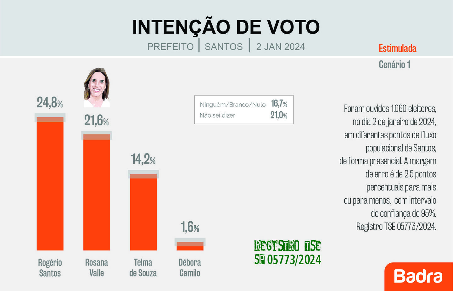 Rosana Valle: O Partido Liberal (PL) tem um projeto para Santos. Reunimos especialistas em diversas áreas que estão trabalhando em propostas técnicas para o desenvolvimento da cidade. Sei que sou um nome forte do partido para concorrer à eleição municipal, estou avaliando e agradeço o reconhecimento da população que me coloca entre os primeiros colocados na pesquisa da Badra.