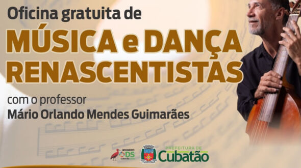 A Prefeitura de Cubatão, por meio da Escola Técnica de Música e Dança "Ivanildo Rebouças da Silva", localizada na Av. Nações Unidas, 168, Vila Nova, realiza nos dias 13 e 14 de novembro a Oficina Gratuita de Música e Dança Renascentistas, ministrada pelo professor Mário Orlando Mendes Guimarães, especialista em instrumentos e danças do período. A ação faz parte do Projeto Pedagógico da escola e tem apoio da Secretaria de Educação (Seduc).