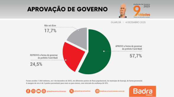 O levantamento de dezembro sugere que o governo municipal termina 2025 em trajetória positiva, com aumento gradual da avaliação e aprovação consistente. Mas também aponta que o Guarujá continua exercendo sua marca histórica: a régua alta, a cobrança por entregas concretas e a análise do cotidiano como principal critério de julgamento político.