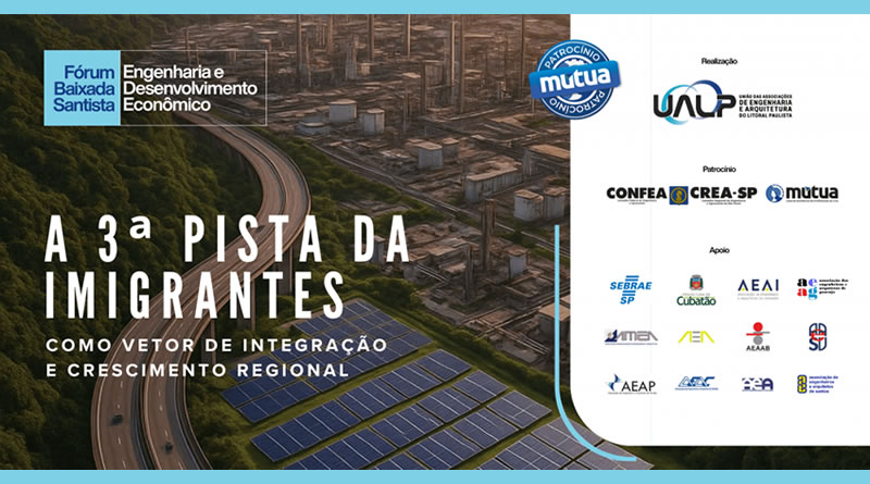 Um debate cada vez mais necessário que traz à tona a necessidade de superar um dos principais desafios para o desenvolvimento da Baixada Santista: os gargalos logísticos. Pensando nisso, a União das Associações de Engenharia e Arquitetura do Litoral Paulista (UALP) que conecta os presidentes das associações de engenheiros e arquitetos das dez cidades do litoral paulista, realiza o Fórum Baixada Santista: Engenharia e Desenvolvimento Econômico - a 3ª pista da Imigrantes como vetor de integração e crescimento regional.