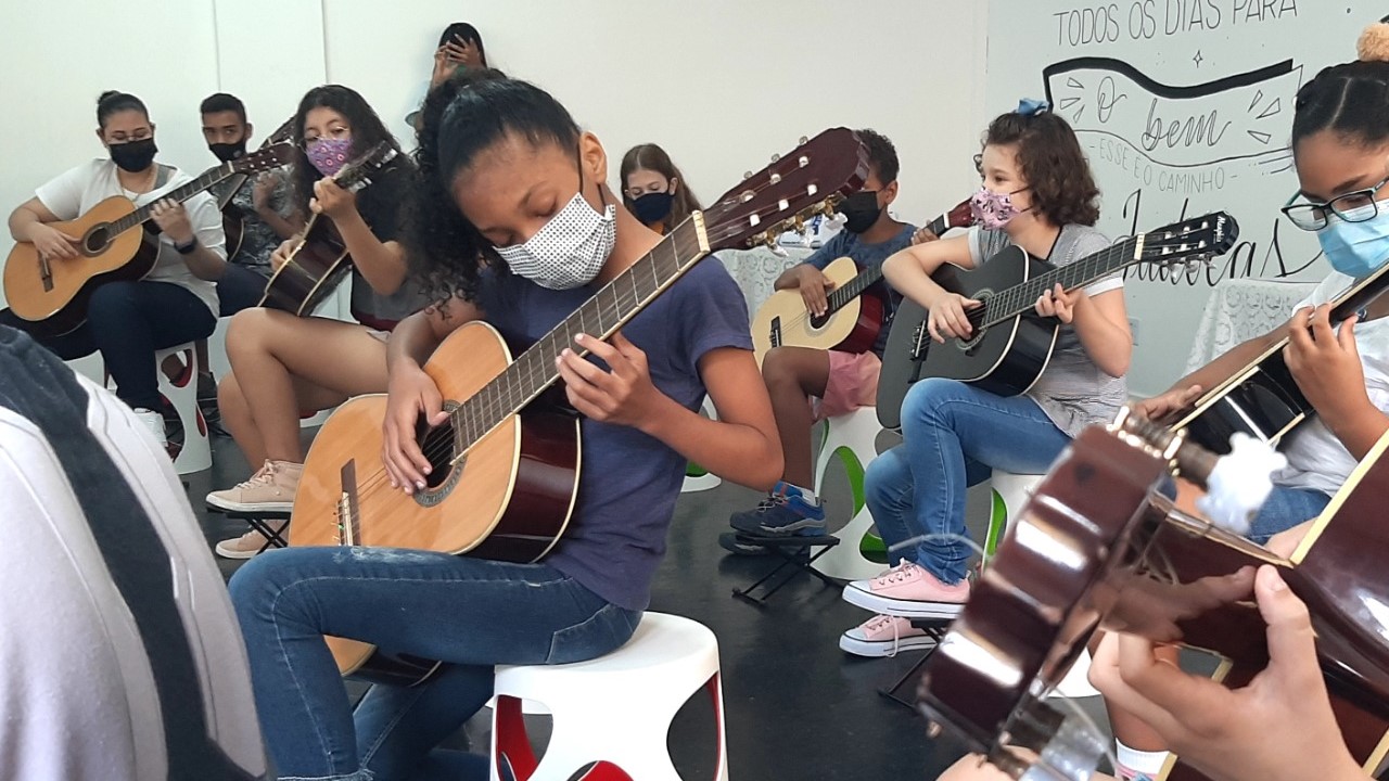 Já o Musicalidade na Gota tem 40 vagas para a turma de violão. As aulas, divididas em 4 horários diferentes, promovem a educação musical, a prática coletiva de música e a formação de público.