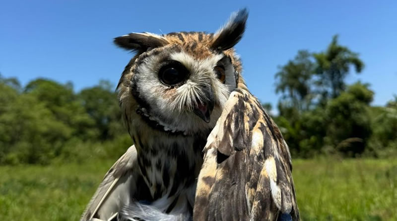 Durante operação em área de lazer náutico, realizada pelo Grupamento Ambiental de Guarujá (GDA) da Guarda Municipal (GCM), no último sábado (15), a equipe recebeu de um munícipe uma coruja-orelhuda, da espécie Asio clamator, que se chocou contra uma vidraça.