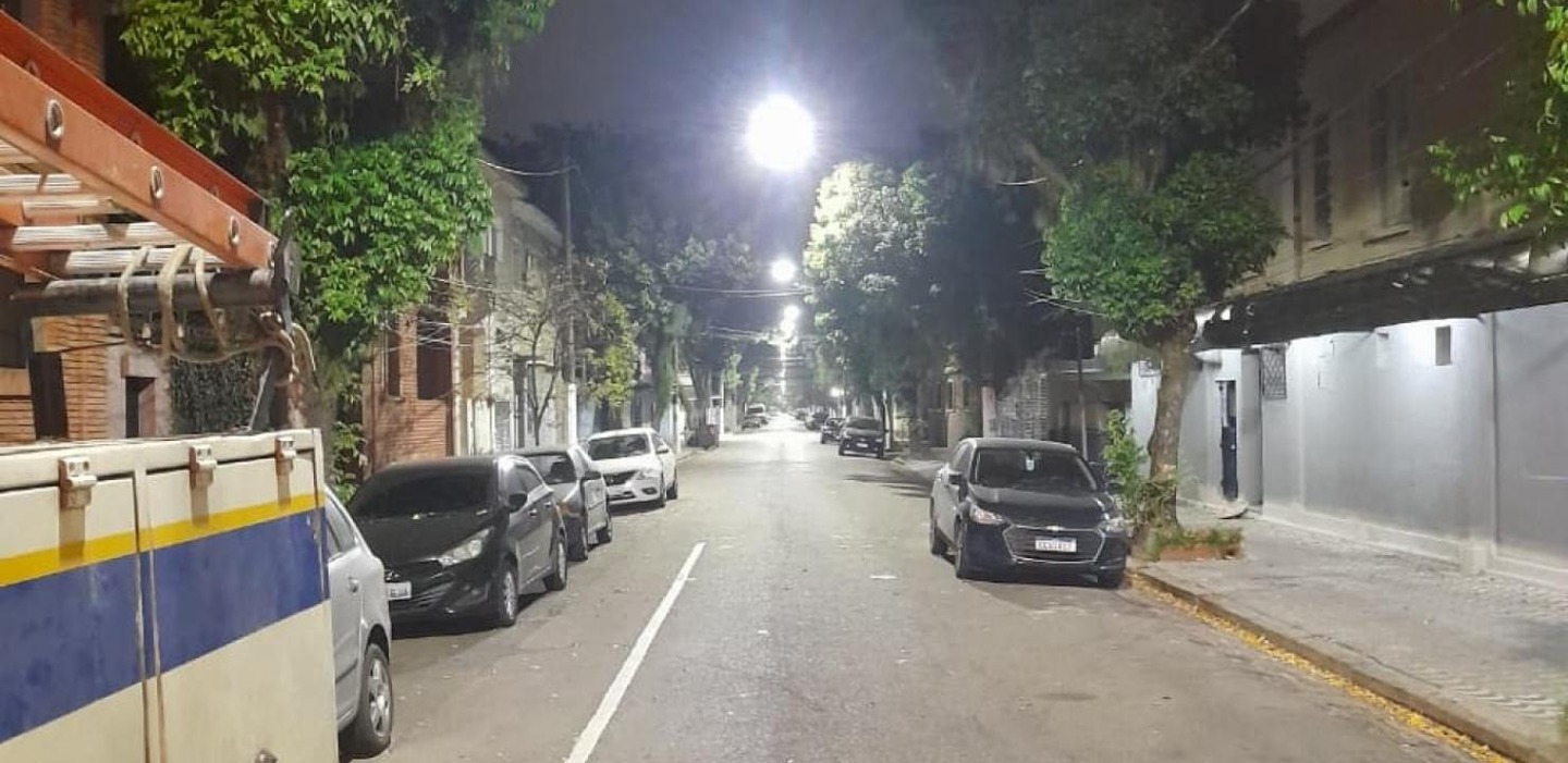 Os trabalhos estão a cargo do consórcio formado pelas empresas Seven, Quantum e Fortnort (SQF IP Santos), responsável pela manutenção e expansão da rede de iluminação pública.