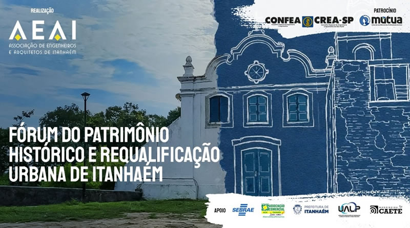 Inscrições: https://www.sympla.com.br/evento/forum-do-patrimonio-historico-e-requalificacao-urbana-de-itanhaem/3280516