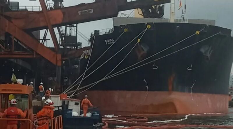 mpresa de abastecimento isolou o navio com boias que evitam que o combustível se espalhe e absorvem o óleo - Foto: Reprodução