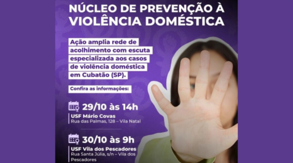 Nestas quarta e quinta-feiras, 29 e 30 de outubro, as Unidade de Saúde da Família (USF) Mário Covas e Vila dos Pescadores recebem a implantação do Núcleo de Prevenção à Violência doméstica (NPV). A iniciativa amplia a rede de acolhimento com escuta especializada aos casos de violência doméstica em Cubatão, que passa a contar com seis unidades pioneiras no atendimento e notificação de casos de violência. A inauguração será realizada na USF Mário Covas no dia 29 de outubro, às 14h, e na USF Vila dos Pescadores dia 30, às 9h.