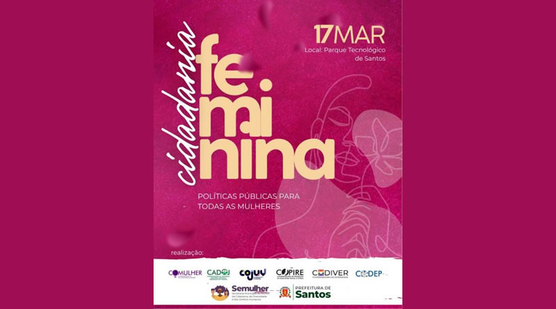 Com o objetivo de promover um espaço de diálogo e escuta coletiva, a Secretaria da Mulher, Cidadania, Diversidade e Direitos Humanos de Santos (Semulher) promove, nesta terça-feira (17), o encontro Cidadania Feminina - Políticas Públicas para Todas as Mulheres. O evento, gratuito e aberto ao público, ocorrerá no Parque Tecnológico de Santos (Rua Henrique Porchat, 47 - Vila Nova), a partir das 9h.