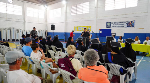 Em uma cerimônia marcada por alegria e celebração, no embalo da Bateria da Feliz Idade do grupo Conviver, o PAT Mongaguá diplomou as 18 formandas da 1ª turma do Curso de Cuidador de Idosos. O evento foi realizado no Clube da Melhor Idade e reuniu autoridades e convidados.