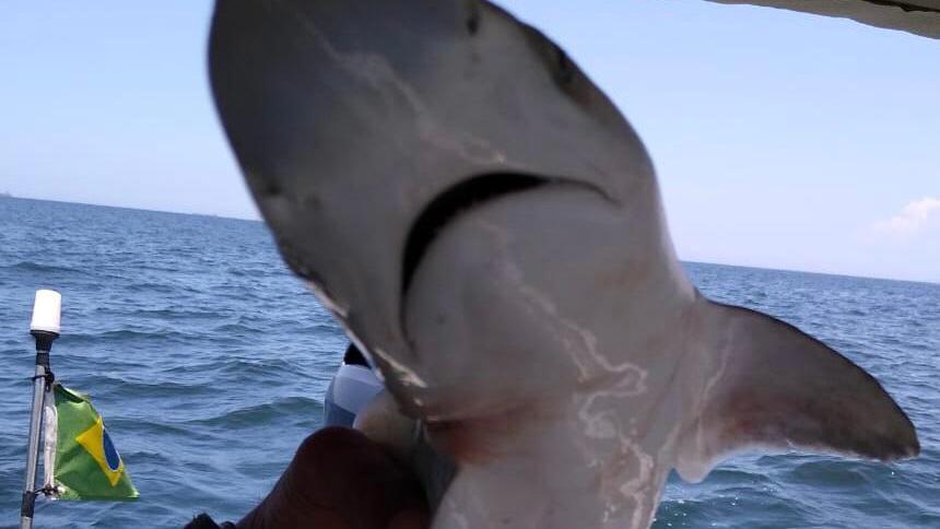 O filhote de tubarão estava entre as espécies de peixes que estavam presos à rede e foram devolvidos vivos ao mar - Divulgação/CiaMar