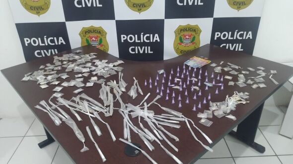 Foram apreendidas 110 porções de skunk, 84 pedras de crack, 65 pinos com cocaína e 48 porções de maconha - Divulgação/PCSP