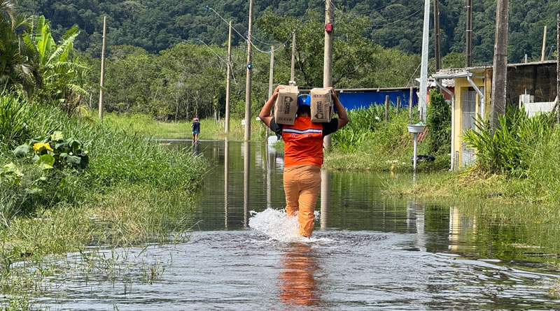 No sábado (28), as equipes municipais realizaram a entrega de 40 kits de ajuda humanitária, além de água e materiais de limpeza, em pontos de difícil acesso, como a Rua Maria Rita da Silva, Rua dos Funcionários Públicos e na Avenida Atlântica. No domingo (1º), a ação continuou, desta vez na região mais afastada do bairro Jardim Praia Grande, com a entrega de mais 60 kits, incluindo ração para os animais.