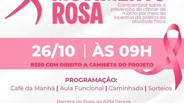 No dia 26 de outubro, às 9h, a orla de Santos será palco do Projeto Beneficente "Movimento Rosa", idealizado pela professora de Educação Física Gabriela Napolitano, que está em tratamento oncológico - Créditos