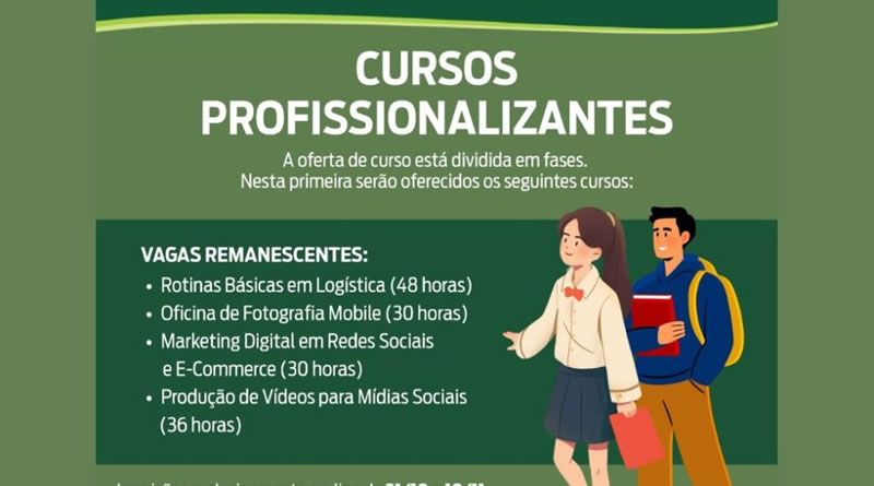 Ao todo são 21 cursos, com mais de 1.800 horas de atividades, entre prática e teórica. Ainda serão ofertadas, nas próximas fases, os seguintes cursos: Confecção de Bijuterias; Docinhos para Festa – doces em massa e cristalizados; Formação de Garçom; Fotografia para Redes Sociais; Introdução à Animação Digital; Jogos Digitais; Montagem e Manutenção de Computadores; Produção de Artesanato; Salgadinhos para Festa; Técnicas Básicas em Cozinha; Técnicas Básicas de Cortes de Cabelo Feminino; Técnicas Básicas de Cortes de Cabelo Masculino; Técnicas Básicas de Maquiagem; Unhas Artísticas.