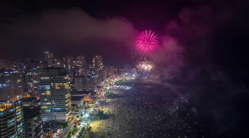 Para celebrar a virada do ano em Praia Grande, a Administração Municipal prepara um lindo espetáculo de queima de fogos sem estampido (baixo ruído) para chegada em 2026. Distribuídos em sete pontos ao longo da faixa de areia, nos bairros Canto do Forte, Boqueirão, Aviação, Tupi, Mirim, Caiçara e Real, serão 10 minutos de luzes e cores, visíveis de qualquer trecho dos 22,5 quilômetros de praia.