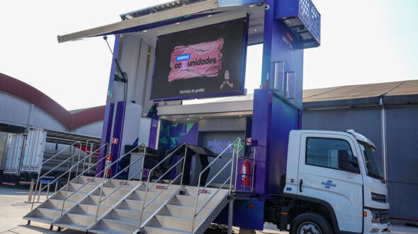 Focada em experiências digitais, a unidade itinerante do Sebrae-SP é equipada com telas touchscreen, óculos de realidade virtual e diversos recursos que tornam o atendimento mais dinâmico, prático e educativo. O veículo traz um baú elevatório com telão LED externo, ambiente moderno e estrutura completa para orientar empreendedores e futuros empresários.